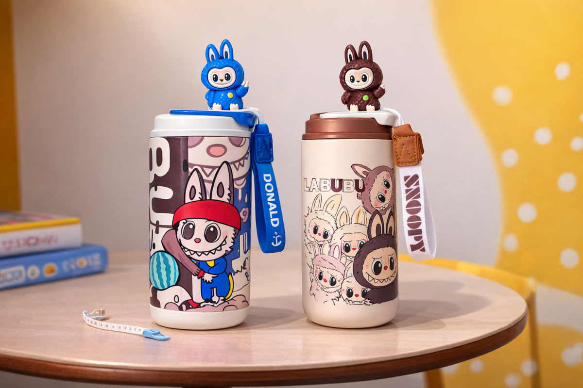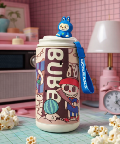 Labubu Style Insulated Sipper Bottle – 450ml | Cute Cartoon Print (Random Color & Design)