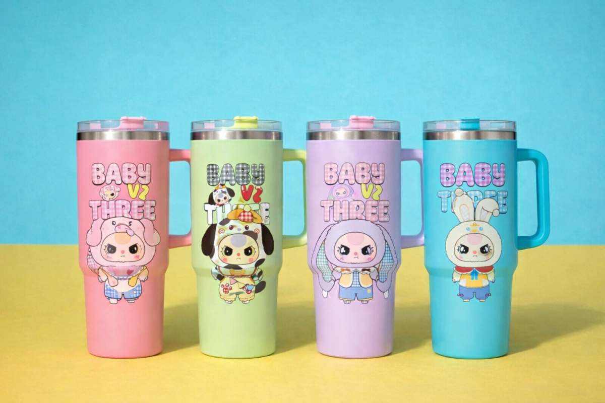 Baby V2 Three Cute Bunny Insulated Tumbler – 1200ml | Cute Cartoon Print (Random Color & Design)