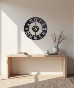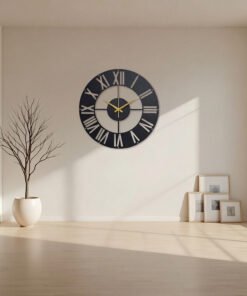 Elevate your space with the Aurevia Roman Wall Clock, a refined blend of modern minimalism and timeless elegance. Designed with a sleek matte black metal frame, bold numeric markers, and champagne-gold hands, this statement wall clock adds a touch of quiet luxury to any interior.