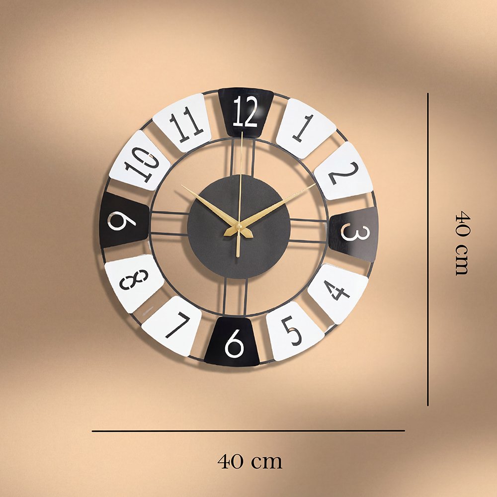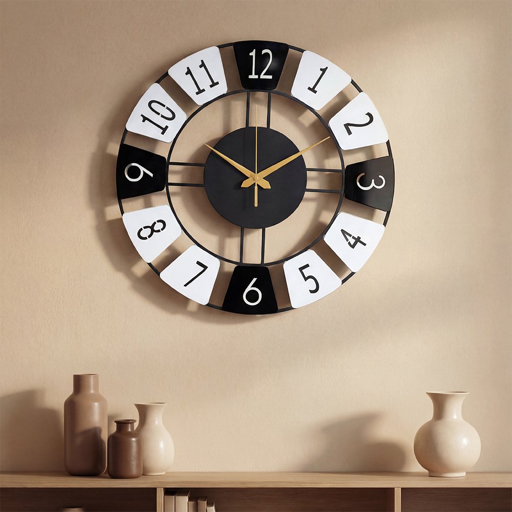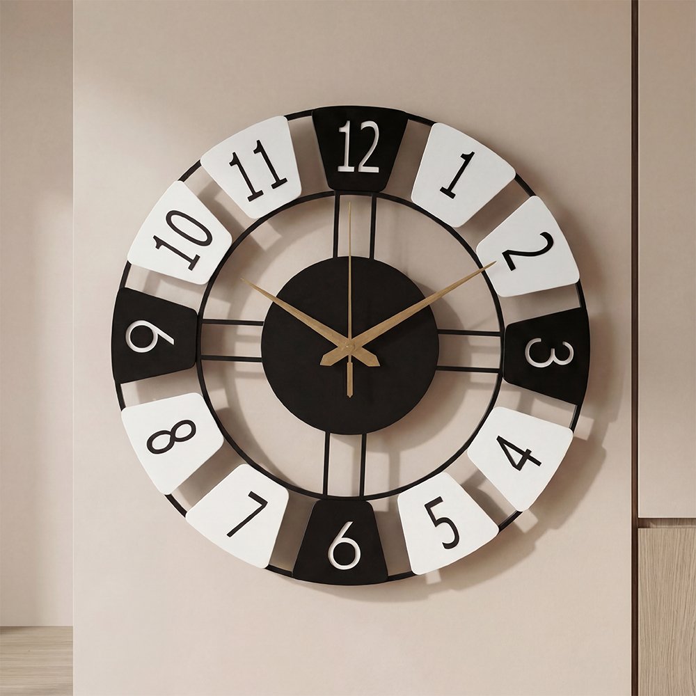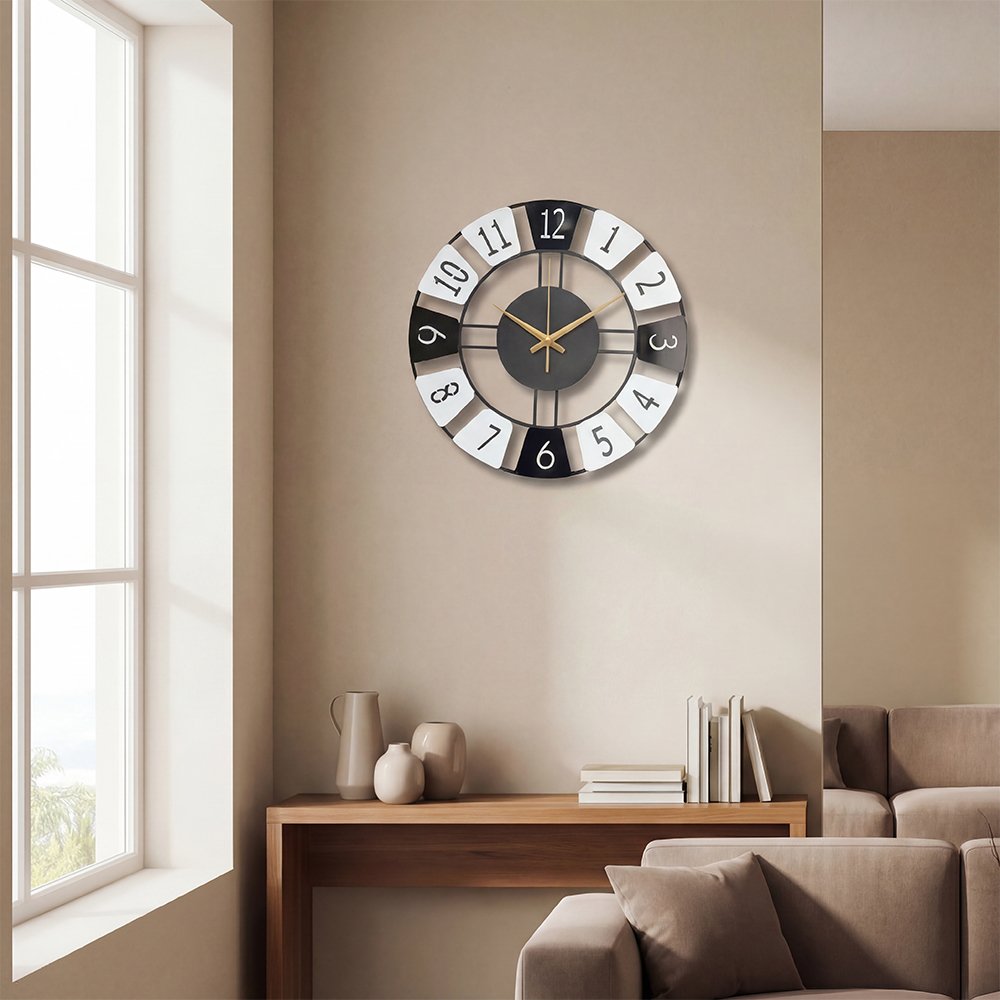 Elevate your space with the Modern Dual-Tone Metal Wall Clock, a refined blend of modern minimalism and timeless elegance. Designed with a sleek matte black metal frame, bold numeric markers, and champagne-gold hands, this statement wall clock adds a touch of quiet luxury to any interior.