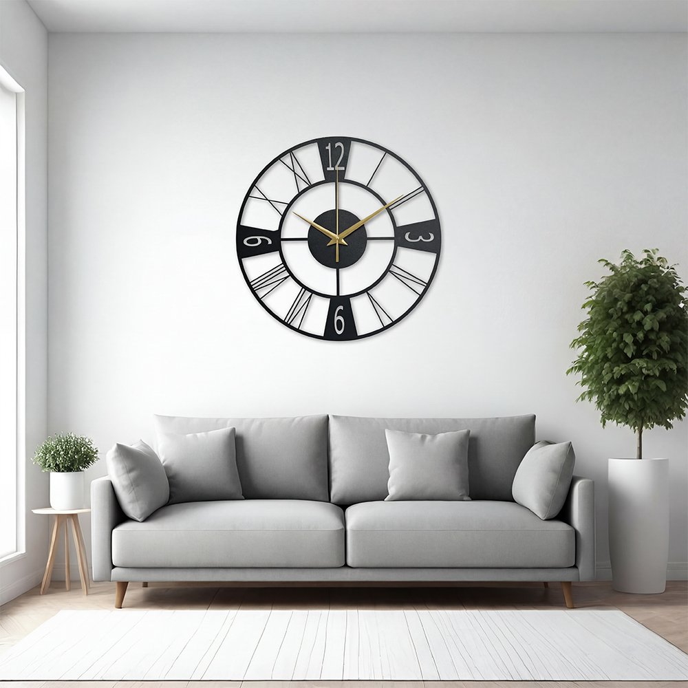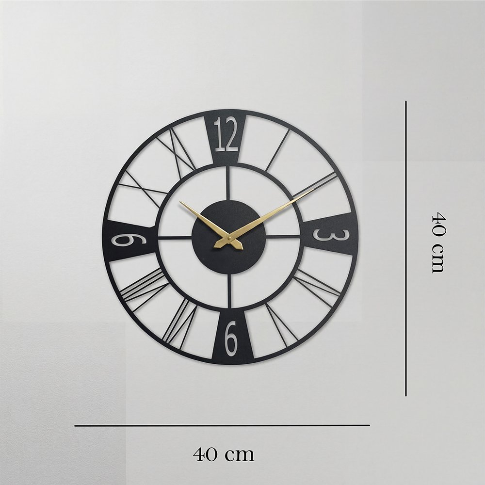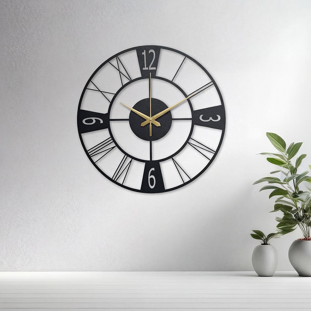 Elevate your space with the Noir Axis Metal Wall Clock, a refined blend of modern minimalism and timeless elegance. Designed with a sleek matte black metal frame, bold numeric markers, and champagne-gold hands, this statement wall clock adds a touch of quiet luxury to any interior.