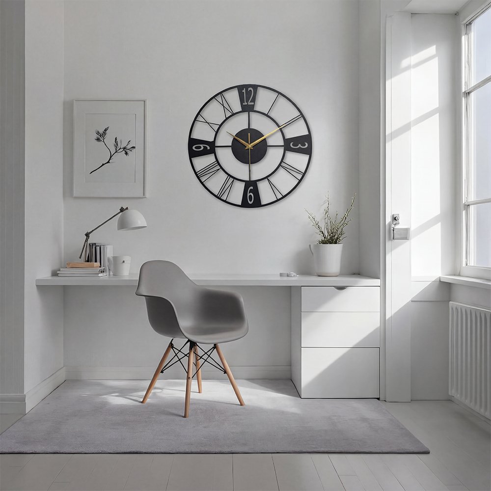 Perfect for home offices, living rooms, bedrooms, or executive workspaces, its open-frame design creates visual depth while maintaining a clean, uncluttered aesthetic. Precision engineering ensures accurate timekeeping, while the premium metal construction delivers durability and long-lasting performance.
